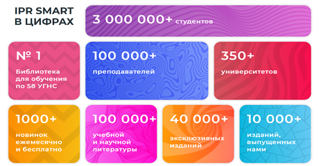 IPR SMART — это гибкий, интегрируемый в университетскую экосистему ресурс, который представляет собой не только цифровую библиотеку, но и инструменты, позволяющие выстраивать индивидуальные образовательные траектории, на основе библиотечных рекомендаций и прочих сервисов — осваивать новые компетенции, преподавателям — гибко и эффективно формировать рабочие программы дисциплин и списки литературы.
